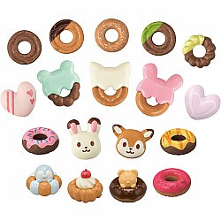 Yum, smells like donuts! Deer Mother has rolled up in her donut delivery wagon, dressed in a sprinkle-covered baker's outfit, ready for hours of pretend play! Choose a donut from the menu, fry it in the cart, add toppings, and sit down at the table with a tasty drink. The wagon can be switched between a shop and a bus that seats four babies (sold separately)! The table, chairs and accessories can be stored in the bed of the wagon. The cart hooks to the vehicle, and everything stacks together when Dip Dip Donuts are ready to hit the road. With more than 30 various other adorable accessories, donut you want to add it to your Calico Critters collection? (A fun gift for teens and kidults too!) Some critters and accessories sold separately. Combine with other sets for maximum fun!