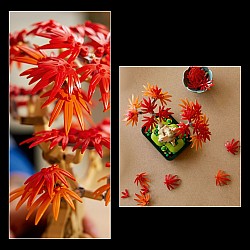 Capturing the beauty and vibrancy of real red maple bonsai trees, this LEGO plant has red and orange leaves and sits in a dark green plant pot. Relax and unwind as you create the plant before displaying it proudly as home decor or office decor that will bring a touch of calm and serenity wherever it's placed.