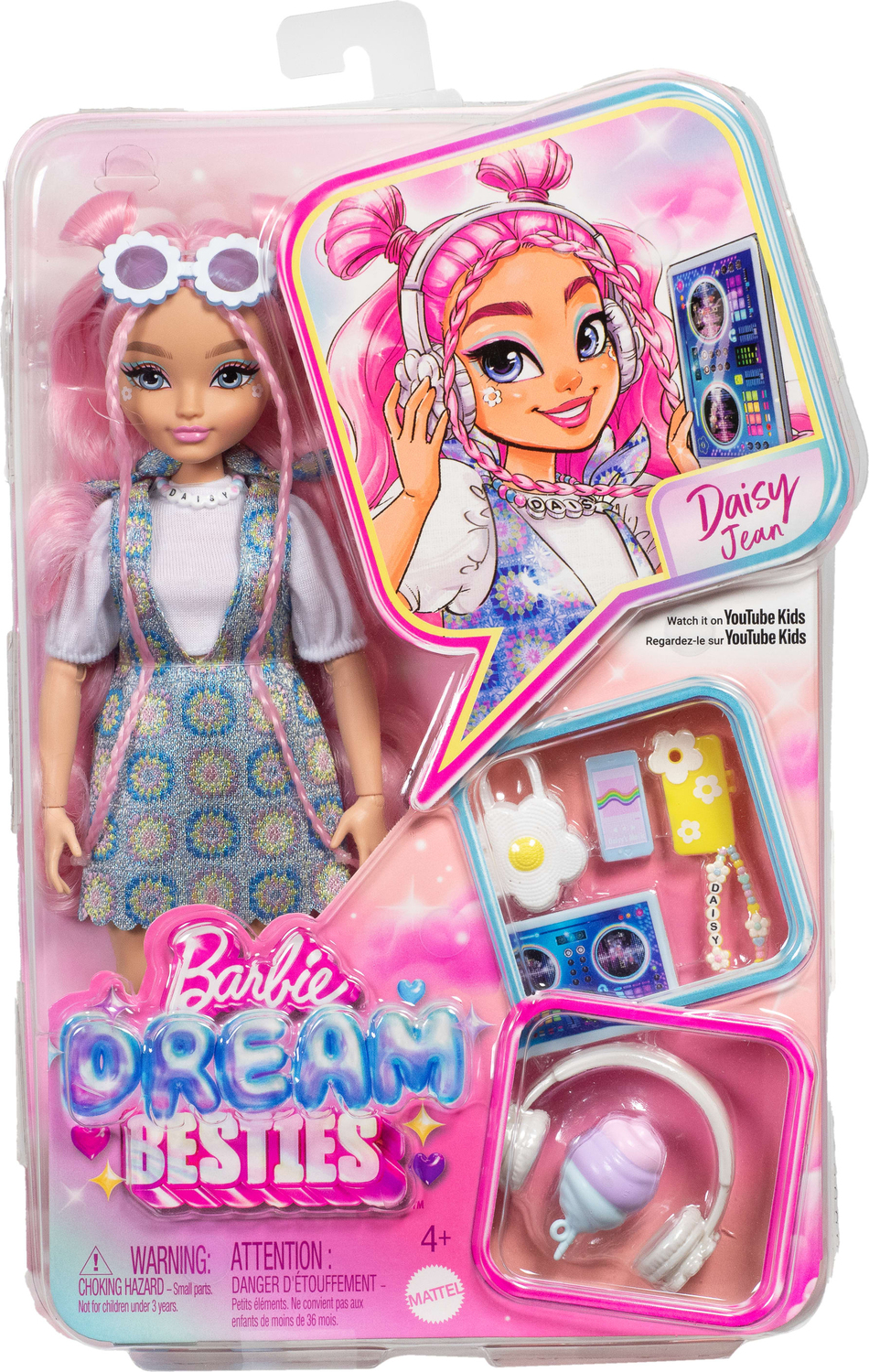 - The Barbie Dream Besties Barbie Daisy Jean doll shows that when you share your unique talents with the world, anything is possible!