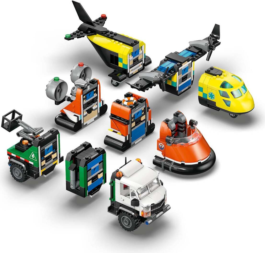 Kids enjoy an immersive LEGO building experience with this 3-model emergency vehicle toy building kit that includes a medical aircraft, a coast guard hovercraft and a service truck with a cherry picker arm. Each model comprises 3 modular parts that can be combined, allowing ages 7+ to mix and match to create an array of action vehicles for exciting missions. Just add the service driver, coast guard and medic minifigures and let the adventures begin.